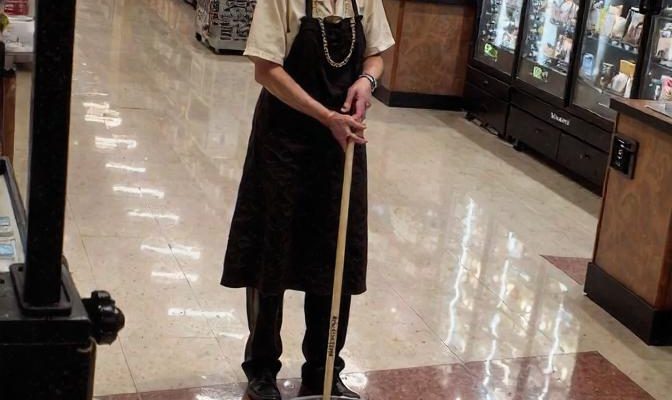 I was nearly at the checkout counter when I heard it, the liquid splashing, followed by a laugh so sharp it practically sliced through the air.