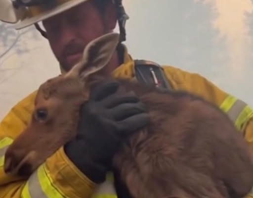 He turned toward the cry. Through the thick smoke, his flashlight beam caught a glimpse — a baby moose, tangled in fallen brush, its small body trembling. The animal’s cries cut through the heat and fear, reaching something deep inside the firefighter. Without hesitation, he made a choice that would change his life.