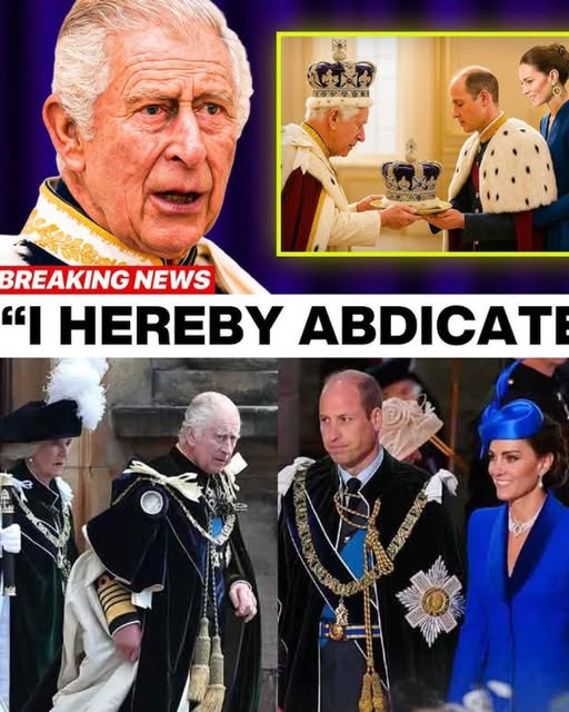 In an unprecedented and historic announcement that has sent shockwaves through the royal family and the world, King Charles III has declared his abdication, passing the throne to his son, Prince William, and his wife, Catherine, Princess of Wales. The decision, made with heavy emotion and a sense of duty, marks a new era for the British monarchy and signals the end of King Charles’s reign before it even fully began.