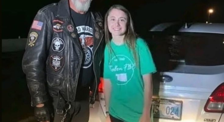 I’ve been riding for thirty-eight years. I’m sixty-three years old, a retired firefighter, and I’ve seen enough scared people to recognize pure terror. This girl wasn’t just frustrated about a flat tire. She was absolutely terrified.