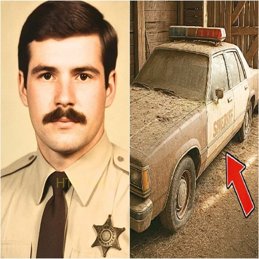 The morning light cut through the gaps in the weathered boards as Jake Morrison hauled open the old barn doors on the Hartwell farm. He’d owned the place for three months but hadn’t explored the back storage barn—just another relic on County Road 47. Then he saw it: the squared-off silhouette of a vehicle under a moth-eaten canvas. He pulled the cover back and froze. A rusting Milbrook County Sheriff patrol car—light bar, badges, the works—sat entombed in dust. The driver’s door was ajar; a diner mug, a clipboard, and a half-eaten sandwich lay inside like time capsules. Jake dialed 911 with shaking hands.