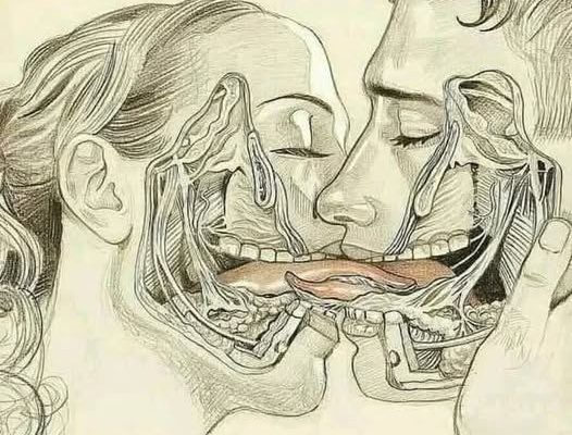 Kissing also triggers at least 5 pairs of nerves, including the olfactory nerve, used when smelling; the trigeminal nerve, triggered by touches to the mouth, tongue, cheeks, chin and jaw; the facial nerve, used to control facial muscles, such as the lips; the glossopharyngeal and vagus nerves, responsible for voice control; and the hypoglossal nerve, which controls the tongue….With so much involved, it has been found that kissing for one minute can burn up to 26 calories…..![]()