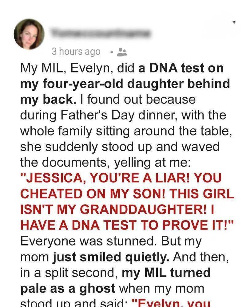 Jessica’s stomach dropped. She couldn’t speak. Her mind raced as Evelyn turned the paper to face the group, dramatically pointing at the results.