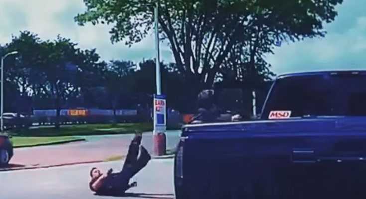 The footage starts off seemingly routine, with officers maintaining calm and following standard procedures during the stop. Everything appears normal—until suddenly, the suspect’s behavior changes. In a split second, he reaches for his clothing, revealing a firearm, and opens fire before any negotiation or warning can take place.