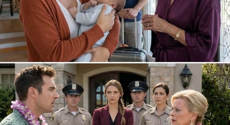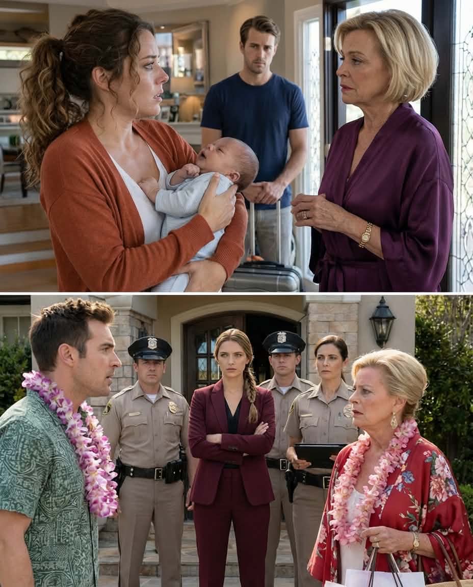 My mother-in-law brushed off my three-day-old baby turning blue as “just a cold” and convinced my husband I was “hallucinating for attention.” They took my credit card and flew to Hawaii for a luxury wedding—on my dime. While they were posting photos of cocktails and sunsets, I was screaming into a dead phone, holding my gasping, dying son while we waited for the ambulance. Five days later, they pulled into the driveway, sunburned and laughing, arms full of designer shopping bags… My husband’s smile faded, replaced by pure horror, as he realized his “vacation” had cost him the only thing that truly mattered.