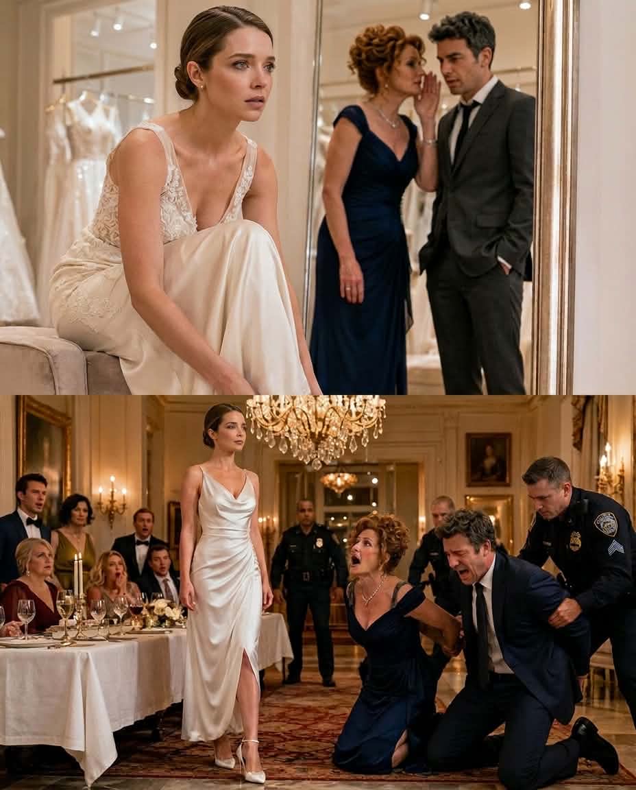 The boutique curtain was only half drawn, pins shimmering along the hem of my dress, when Patricia Vale’s voice slipped through the partition.